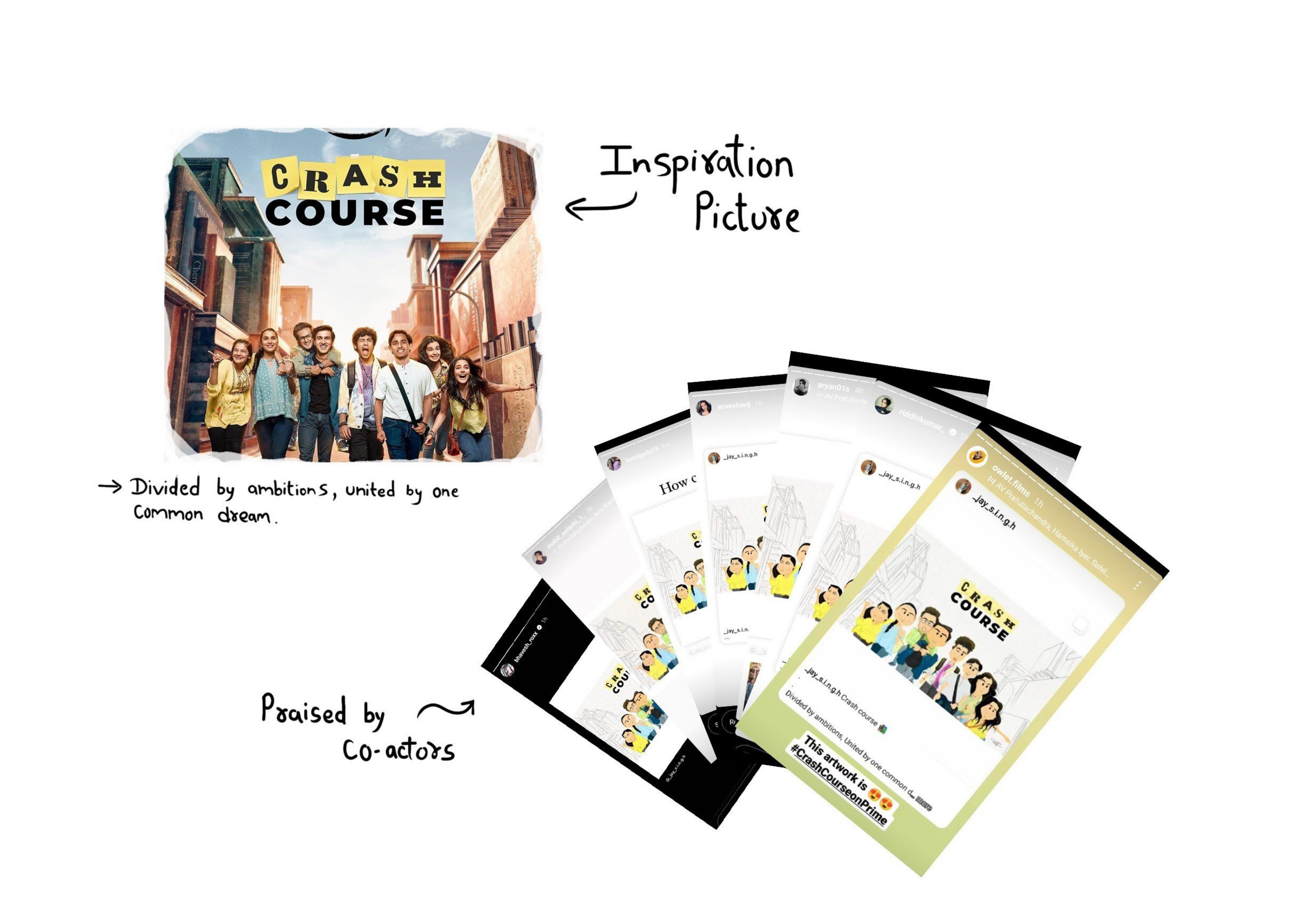 This illustration brings the Crash Course cast to life in a playful, stylized cartoon format, capturing the chaos, friendships, and everyday emotions of Kota’s student life. Each character is designed with expressive features and vibrant colors, highlighting their unique personalities while keeping the youthful tone of the series intact.